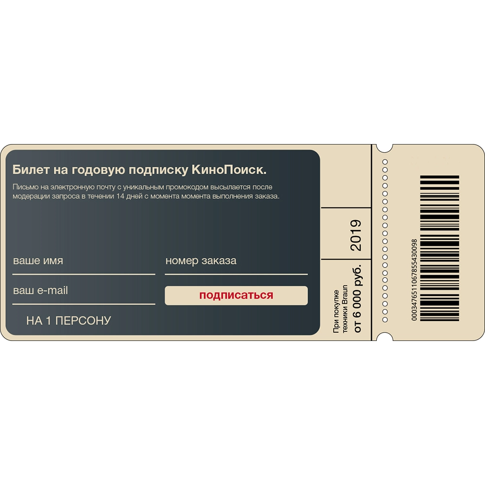 При покупке техники Braun от 6 000 руб. вы становитесь обладателем уникального промокода на годовую подписку крупнейшего сервиса кино и сериалов КиноПоиск.