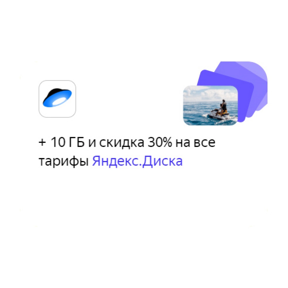 - Дополнительные 10 ГБ на Яндекс.Диске и скидку 30% на покупку места.