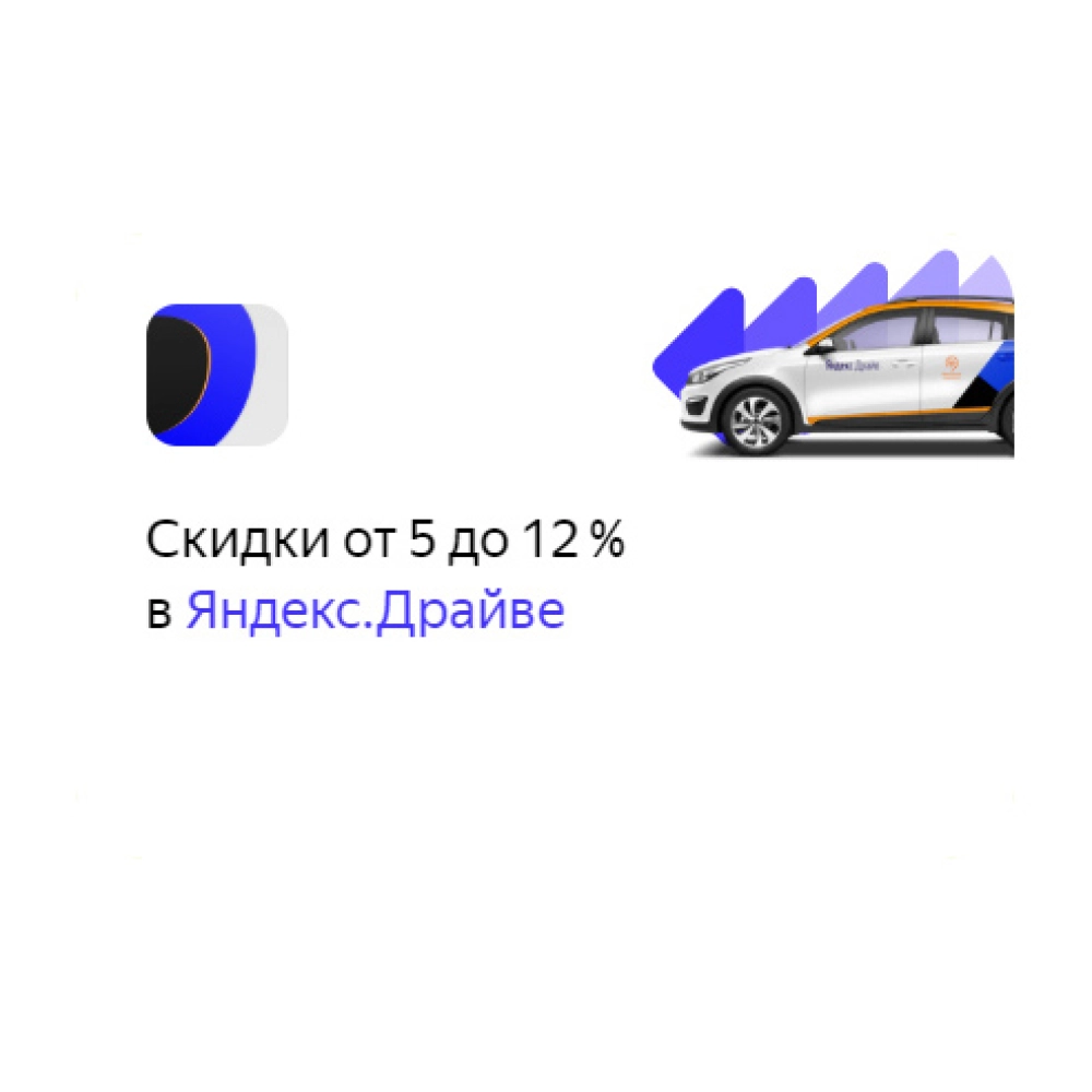 - Специальные условия в Яндекс.Драйве: скидки от 5 до 12% и увеличенное время бесплатного бронирования.