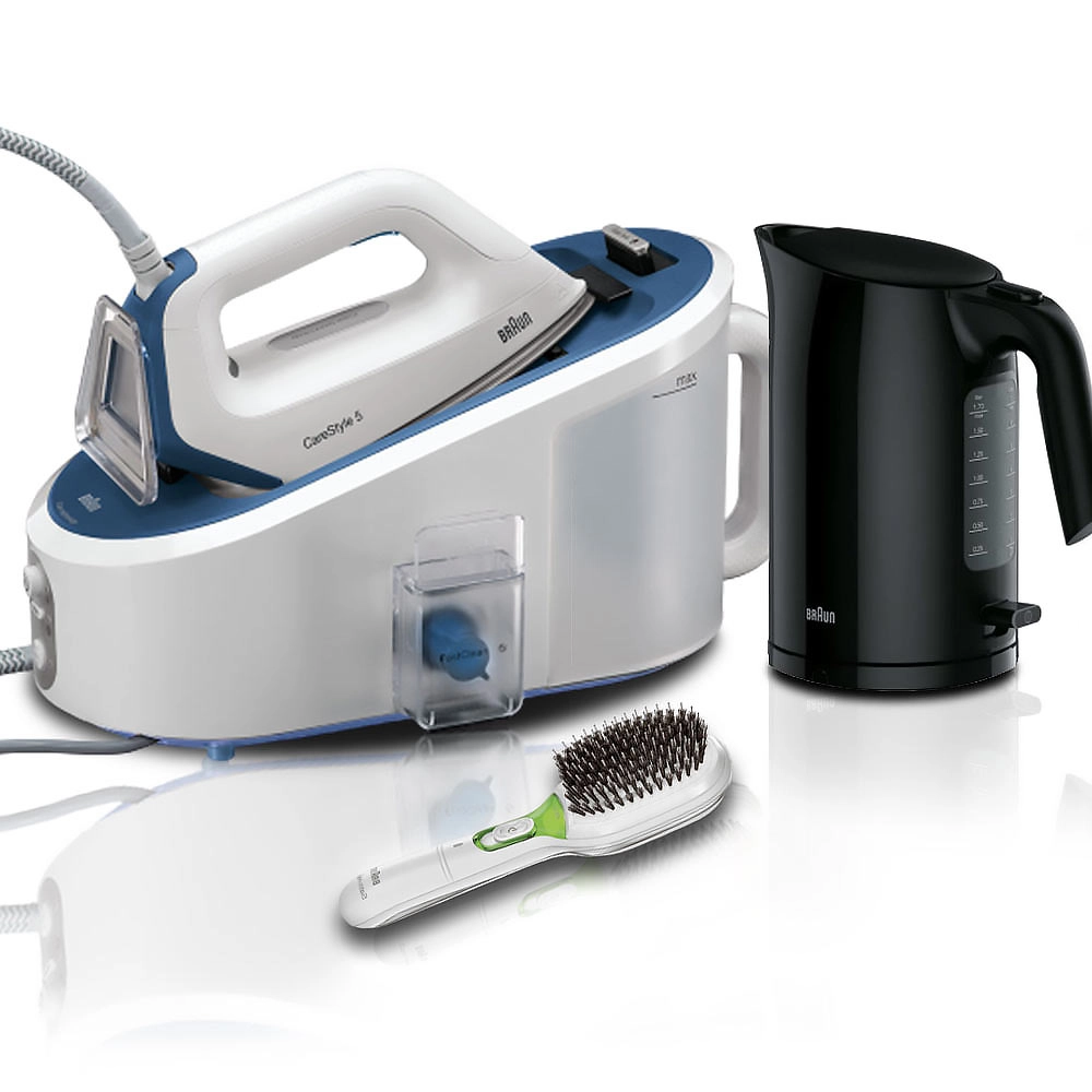 - Набор Braun Парогенератор IS5145 + Чайник WK3100 + Расческа с ионизацией Braun Satin Hair 7 BR750