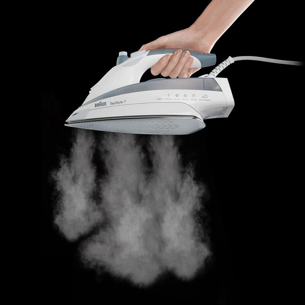 Паровой утюг TexStyle 7 вырабатывает на 60% больше пара*. Высокая мощность позволяет лучше справляться со сложной работой, эффективно, быстро и просто разглаживать даже самые упёртые складки. (*По сравнению с Braun TexStyle 3)