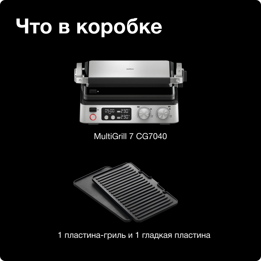 Электрогриль Braun CG7040 поможет вам приготовить стейки из мяса и рыбы, пожарите сосиски и овощи, сделать тосты и сэндвичи. Благодаря продуманной конструкции его можно использовать в закрытом и открытом режимах. На рабочих поверхностях есть антипригарное покрытие. За счёт этого еда получается по-настоящему вкусной, а после использования вы можете снять пластины и вымыть их под струёй воды из крана или в посудомоечной машине.