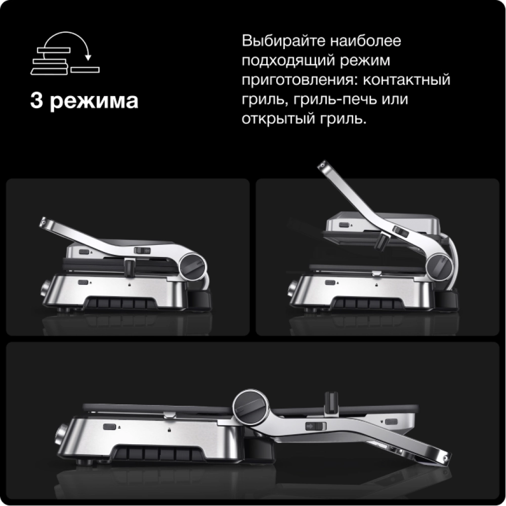 Этот многофункциональный гриль позволяет вам приготовить пищу тремя разными способами: в качестве гриля, вафельницы и сэндвич-гриля. Благодаря этой универсальности вы можете создавать разнообразные блюда и угощения, от сочных стейков и ароматных вафель до вкусных горячих сэндвичей, используя только один компактный прибор. Это не только экономит ваше время и место на кухне, но и обеспечивает возможность готовить разнообразные блюда для всей семьи, подчеркивая ваш кулинарный талант и предоставляя удовольствие от кулинарных экспериментов.