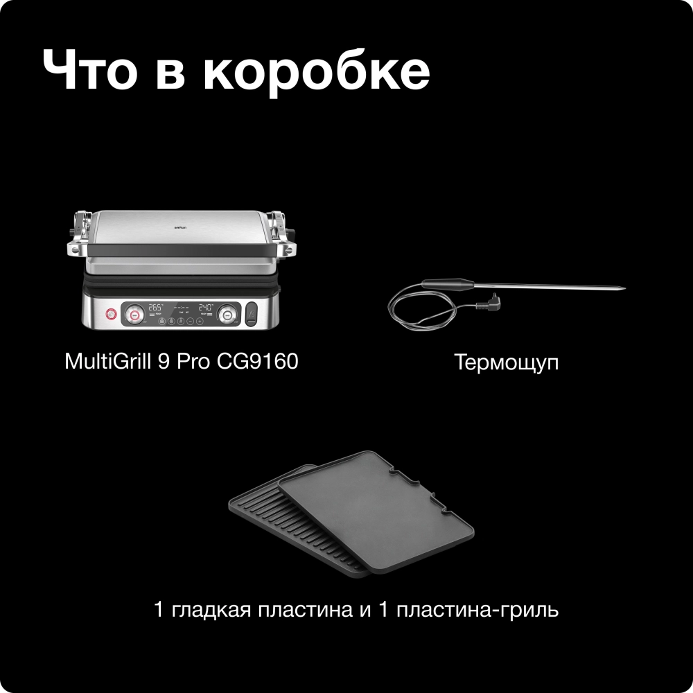 Приобретая Мультигриль Braun CG9160 вы получаете идеально приготовленные блюда благодаря электронному контролю температуры с независимым термостатом для каждой пластины. Каждая пластина оснащена встроенным нагревательным элементом, что обеспечивает равномерное распределение тепла и быстрый нагрев поверхности. Мультигриль оснащен электронным термостатом, который моментально реагирует на падение температуры. Встроенный датчик измеряет точную температуру вашей пищи и выводит информацию на светодиодный дисплей, позволяя вам проверять ее внутреннюю температуру и готовить так, как вам нравится! Функция SEAR позволяет блюду идеально прожариваться снаружи, оставаясь при этом нежным и сочным внутри. Идеально подходит для запечатывания мяса на начальных этапах приготовления. Температура пластины достигает 265°C.