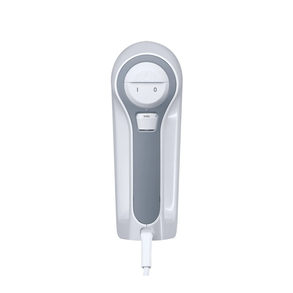 • Для легкого управления миксером выключатель, клавиша регулирования скорости и клавиша отсоединения насадок удобно расположены в верхней части рукоятки. Одним плавным движением можно переключать скоростные режимы от самой низкой скорости до турбо.