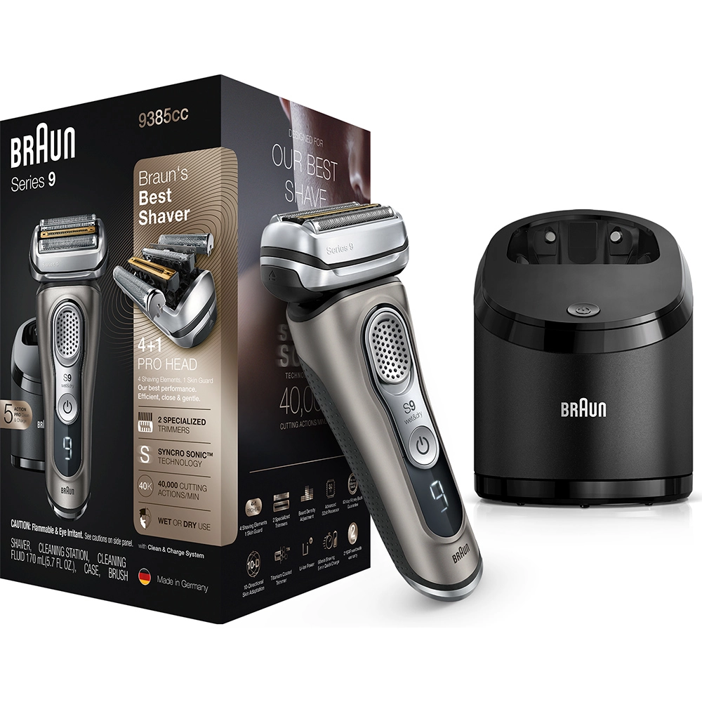 Электробритва Braun Series 9 9385cc со станцией Clean&Charge с функцией сушки и кожаным футляром