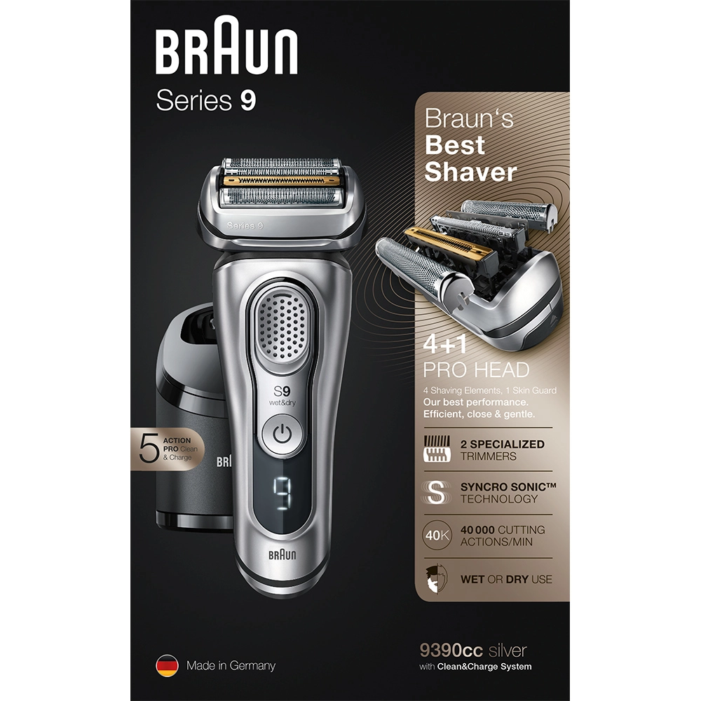 Электробритва Braun Series 9 9390cc со станцией Clean&Charge с функцией сушки и кожаным футляром