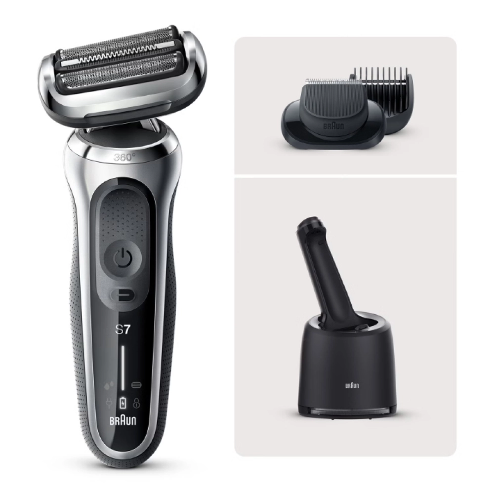 Электробритва Braun Series 7 71-S7500CC бреет очень нежно, кожа на лице в местах бритья почти не краснеет. При этом бритьё очень качественное, волоски срезаются достаточно глубоко. За счёт этого бриться стал реже, интервал увеличился примерно на сутки. Очень удобная ручка, с хорошим покрытием, не проскальзывает. Возможность вращения на произвольные углы во время бритья помогает комфортно адаптироваться к волоскам растущим в разных направлениях. Важно ещё и то, что бритва обеспечивает очень быстрое бритьё, разряжаясь незначительно за такой короткий интервал времени. Поэтому заряжать её требуется достаточно редко. Доставка выполнена в точно в указанную дату и время. Какие-либо внешние дефекты отсутствуют, сама бритва и все аксессуары в идеальном состоянии, всё сверкает.