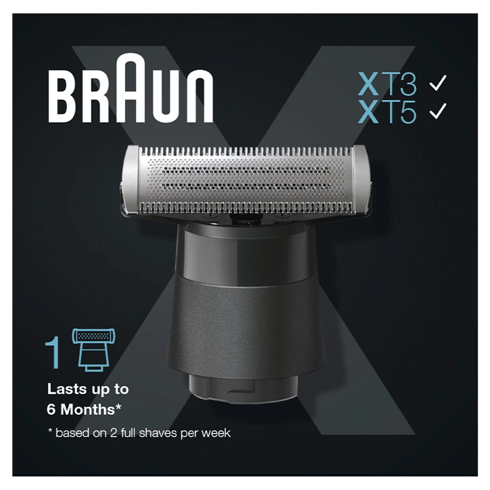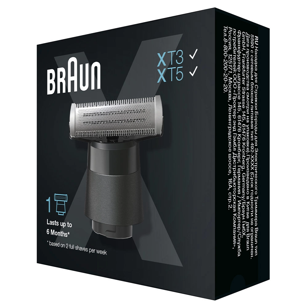 4D-лезвие имеет длительный срок службы, оставаясь острым до 6 месяцев*. Прибор оснащен двухсторонним гребнем, позволяющим легко и быстро подравнивать волосы движениями вверх или вниз. А благодаря 100%-ной водонепроницаемости Braun Series XT5 можно использовать любым способом и в любом месте — с пеной или гелем, над раковиной или в душе.