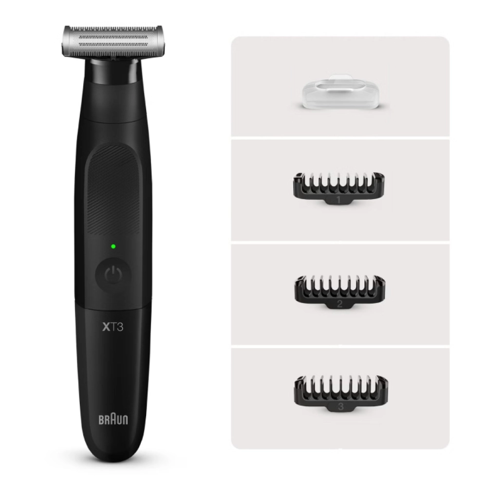 4D-лезвие имеет длительный срок службы, оставаясь острым до 6 месяцев*. Прибор оснащен двухсторонним гребнем, позволяющим легко и быстро подравнивать волосы движениями вверх или вниз. А благодаря 100%-ной водонепроницаемости Braun Series XT5 можно использовать любым способом и в любом месте — с пеной или гелем, над раковиной или в душе.