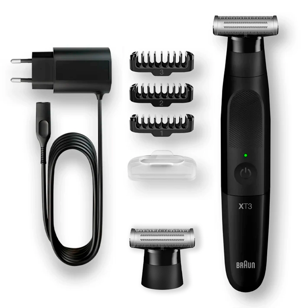 4D-лезвие имеет длительный срок службы, оставаясь острым до 6 месяцев*. Прибор оснащен двухсторонним гребнем, позволяющим легко и быстро подравнивать волосы движениями вверх или вниз. А благодаря 100%-ной водонепроницаемости Braun Series XT5 можно использовать любым способом и в любом месте — с пеной или гелем, над раковиной или в душе.