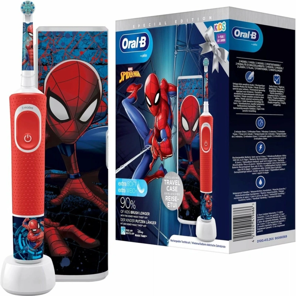Детская электрическая зубная щеткаOral-B Vitality Kids Человек Паук с футляром