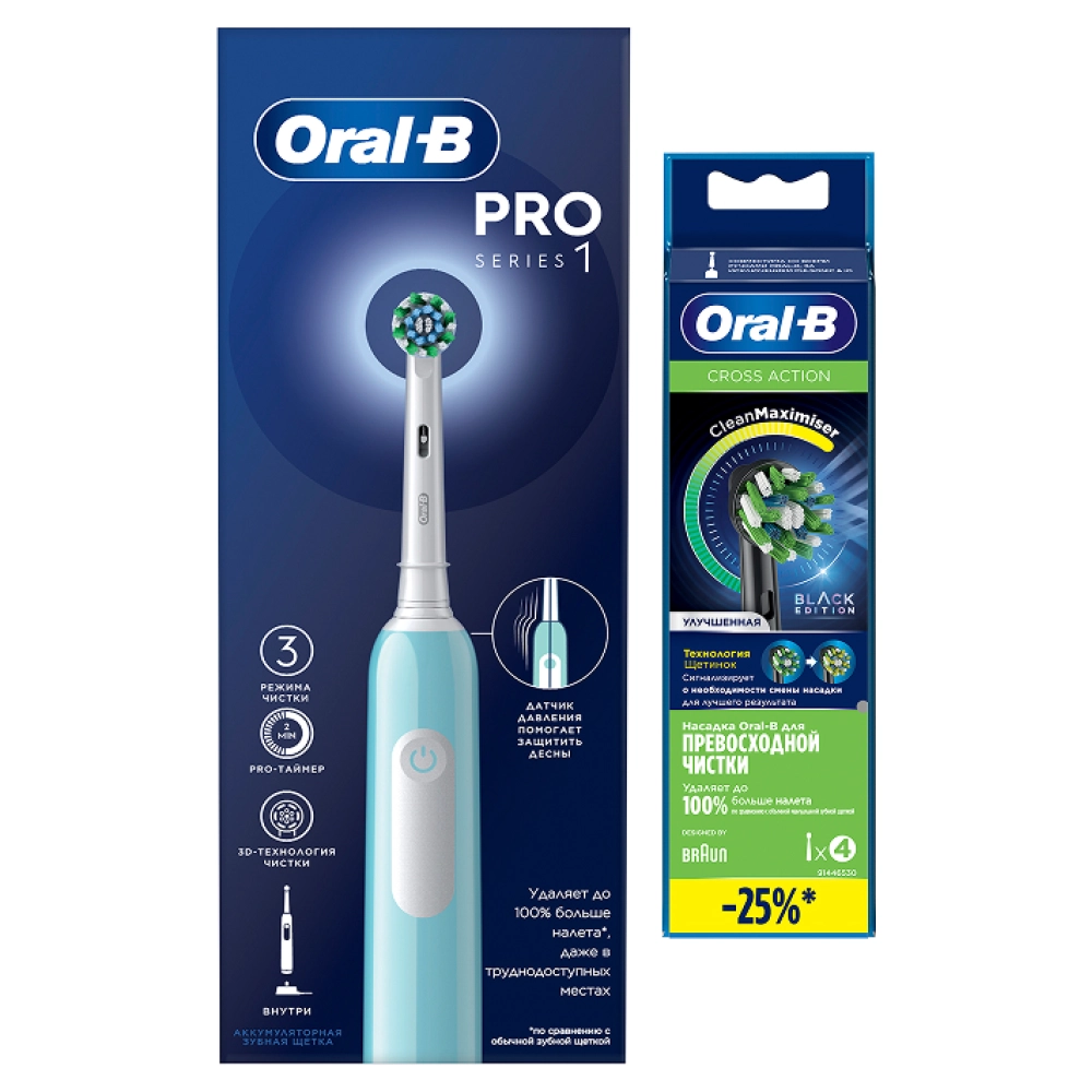 - Электрическая зубная щётка Oral-B Pro Series 1 + Насадка для эффективной чистки Oral-B CrossAction (4 шт)