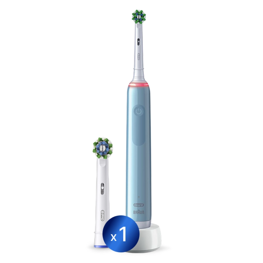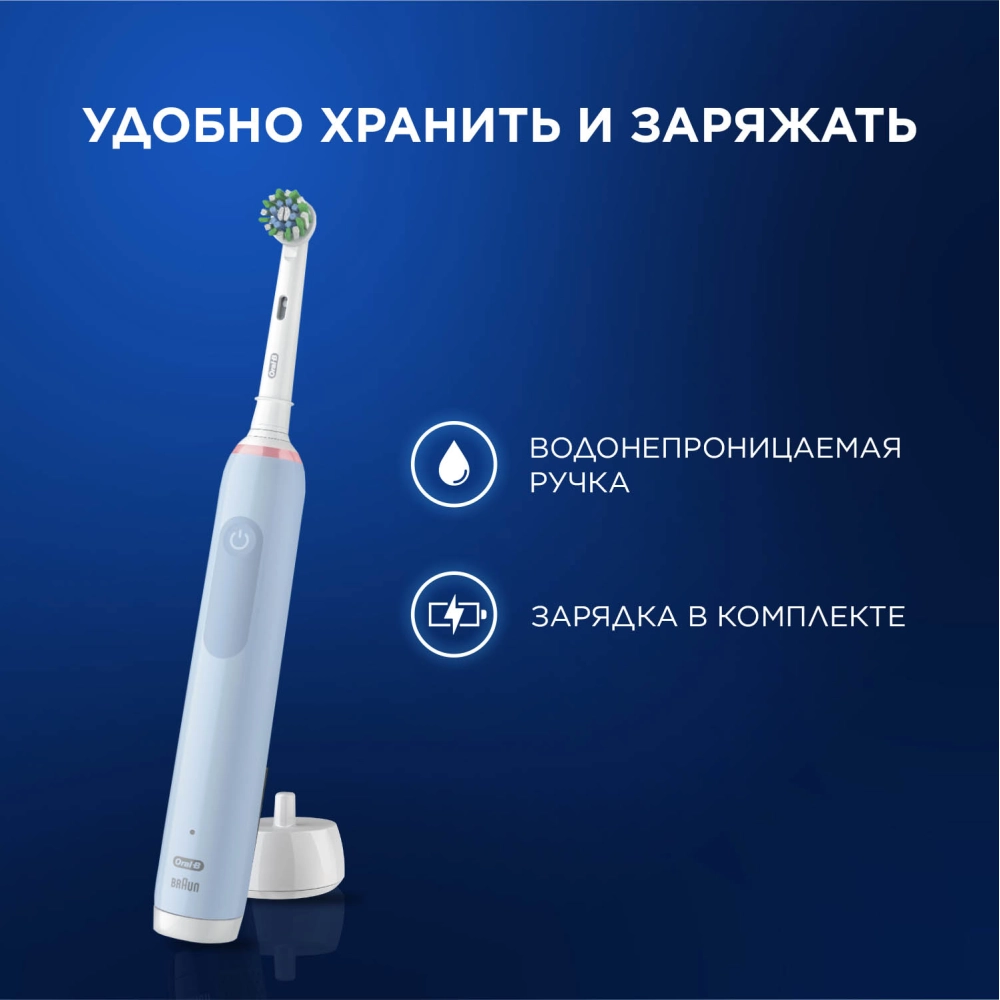 Электрическая зубная щётка Oral-B Pro 3 Голубая с дополнительной сменной насадкой Pro Cross Action (1 шт)