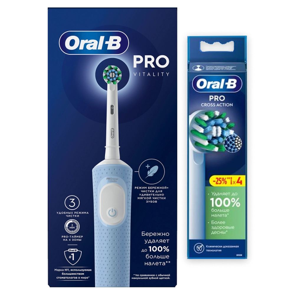 Электрическая зубная щётка Oral-B Vitality Pro + Насадка для эффективной чистки Oral-B CrossAction (4 шт)