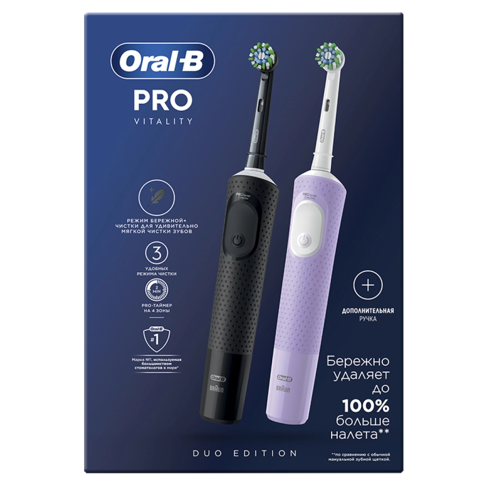 Набор электрических зубных щеток Oral-B Vitality Pro DUO черная и лиловая (2 шт)
