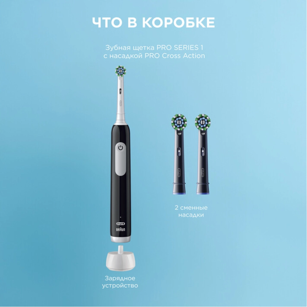 Электрическая зубная щетка Oral-B Pro 1 черная, насадки Pro Cross Action 2 шт