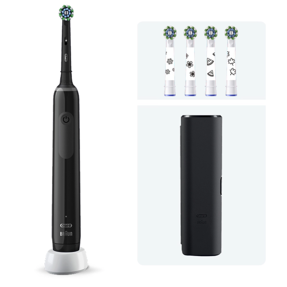 Электрическая зубная щетка Oral-B Pro 3 черная, насадки Cross Action 4 шт