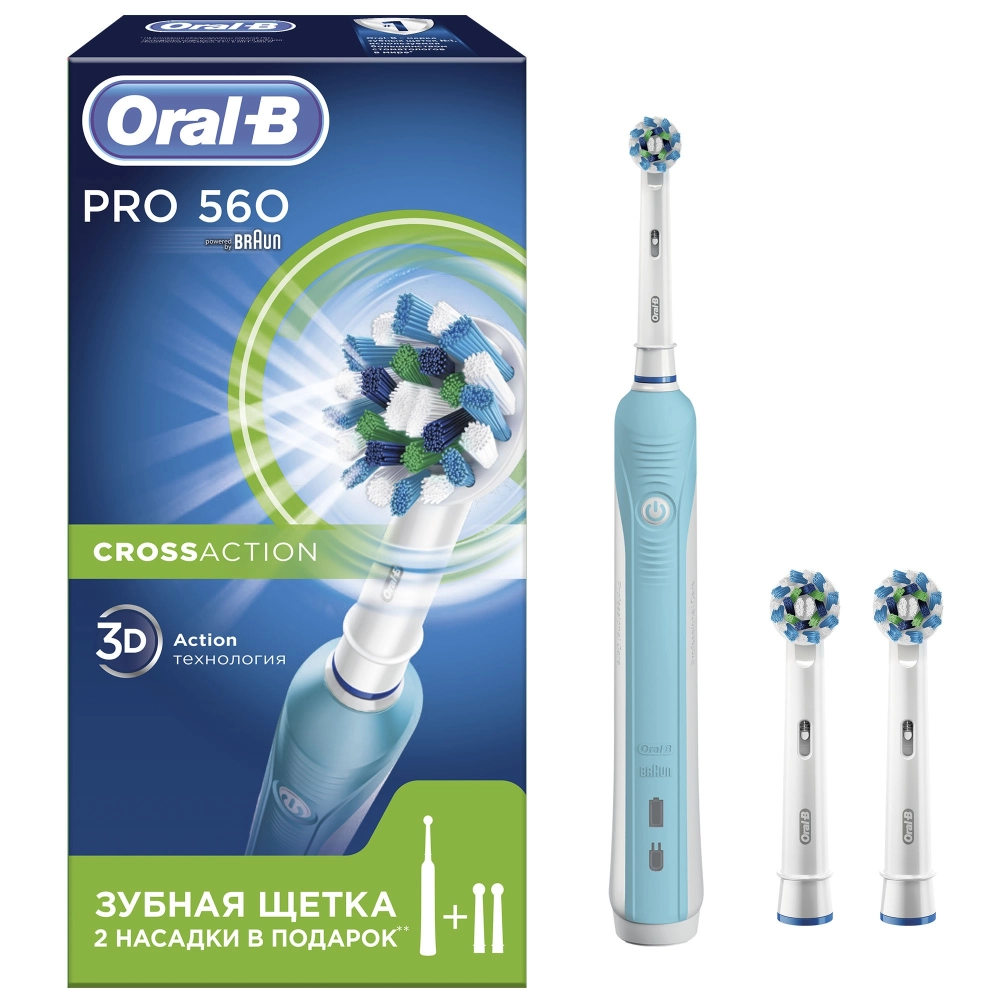 Откройте для себя Oral-B Pro 560! Набор Pro 560 с 2 насадками Cross Action в подарок!Перейдите на новый уровень чистки за 2 минуты в соответствии с рекомендацией вашегостоматолога.