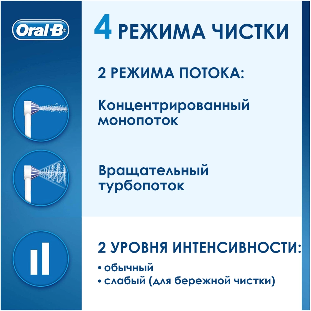 Преимущества использования:- Технология Oxyjet: обогащает воду микропузырьками, обеспечивая лучшее очищение, уменьшая количество бактерий и микробов во рту, защищая тем самым от налёта и воспаления дёсен.