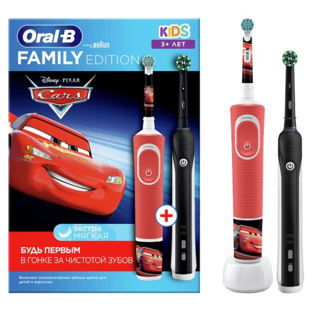 Детская электрическая зубная щетка Oral-B Kids для детей от 3 лет с любимыми героями серии Disney и Pixar «Тачки» обеспечивает эффективный бережный уход за полостью рта. Зубная щетка имеет два режима специально для деликатного ухода за полостью рта ребенка. В комплект входят 4 стикера, с помощью которых можно персонализировать зубную щетку.