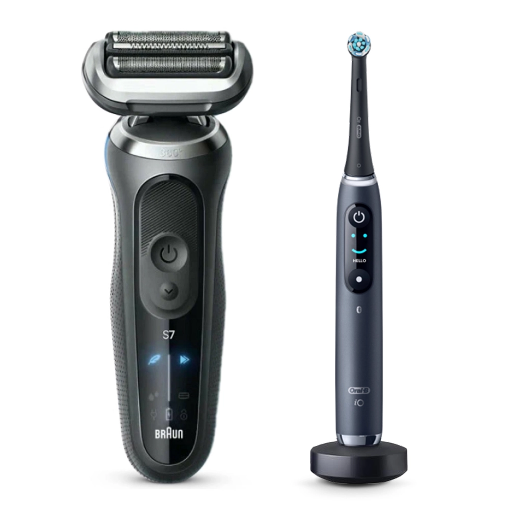 Набор: Электробритва Braun Series 72-G1200s Grey + Электрическая зубная щетка Oral-B iO 9 Black Onyx