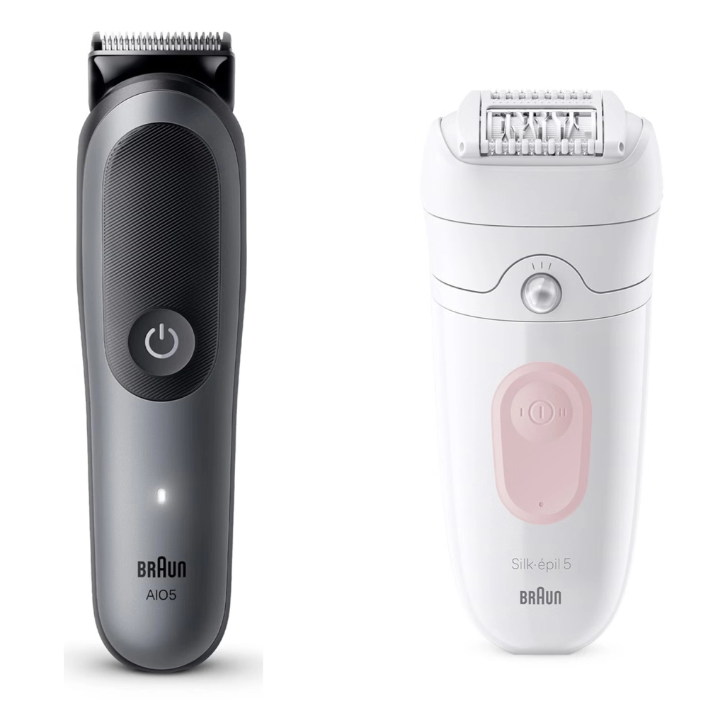Набор: Триммер электрический Braun AIO5520 MS Grey + Эпилятор Braun Silk-epil 5 5-050