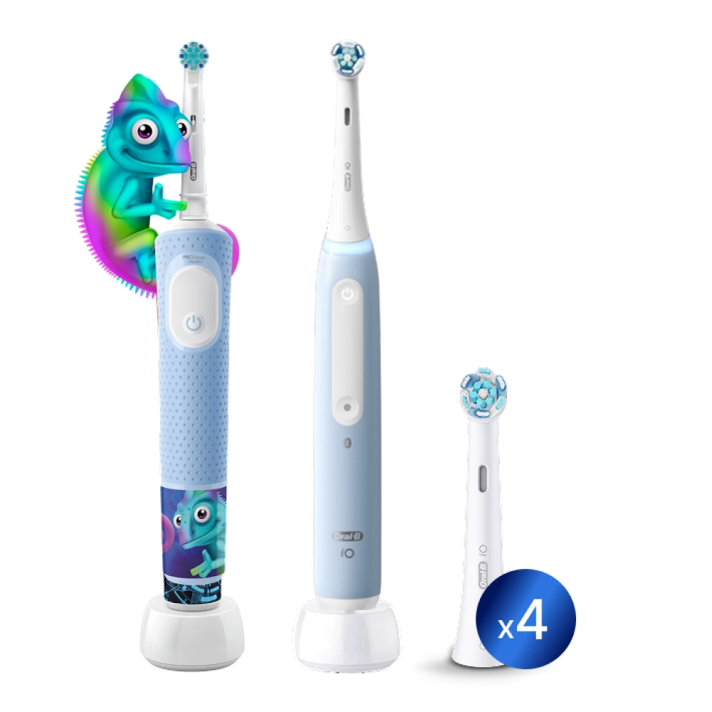 Набор электрических зубных щеток Oral-B Vitality Kids Хамелеон + Oral-B iO 3 Ice Blue + Насадка Ultimate Clean (4 шт)